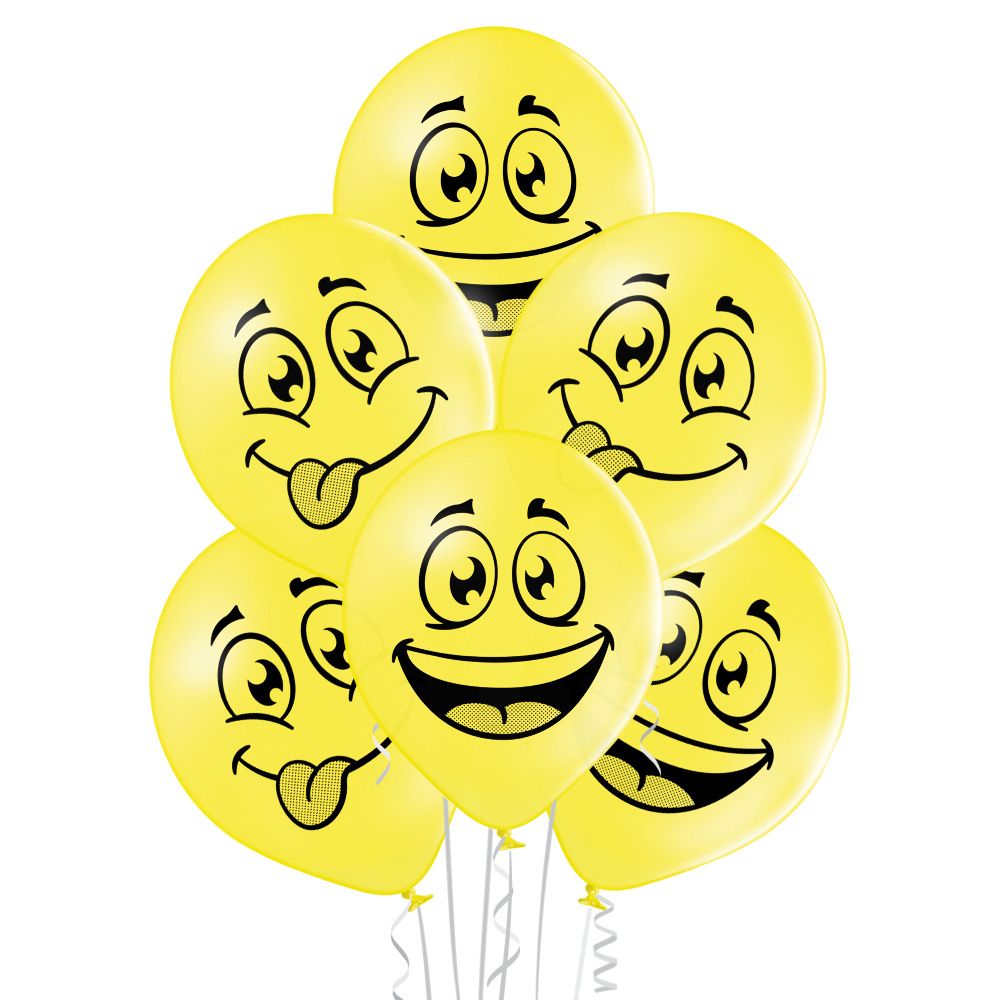 Lateksa baloni print round 30cm/11" 1/6gab Happy Face