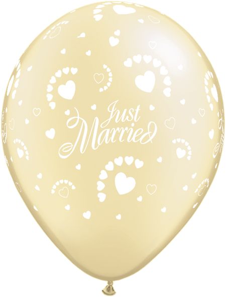 Lateksa baloni print round 30cm/11" 1/25gab Just Married ivory